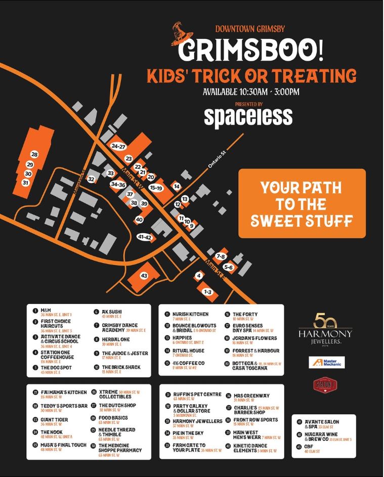 Little ghouls and goblins can collect treats from participating businesses throughout Downtown Grimsby. Look for the official Halloween window signs and snap a photo of the event map to plan your spooky stroll.